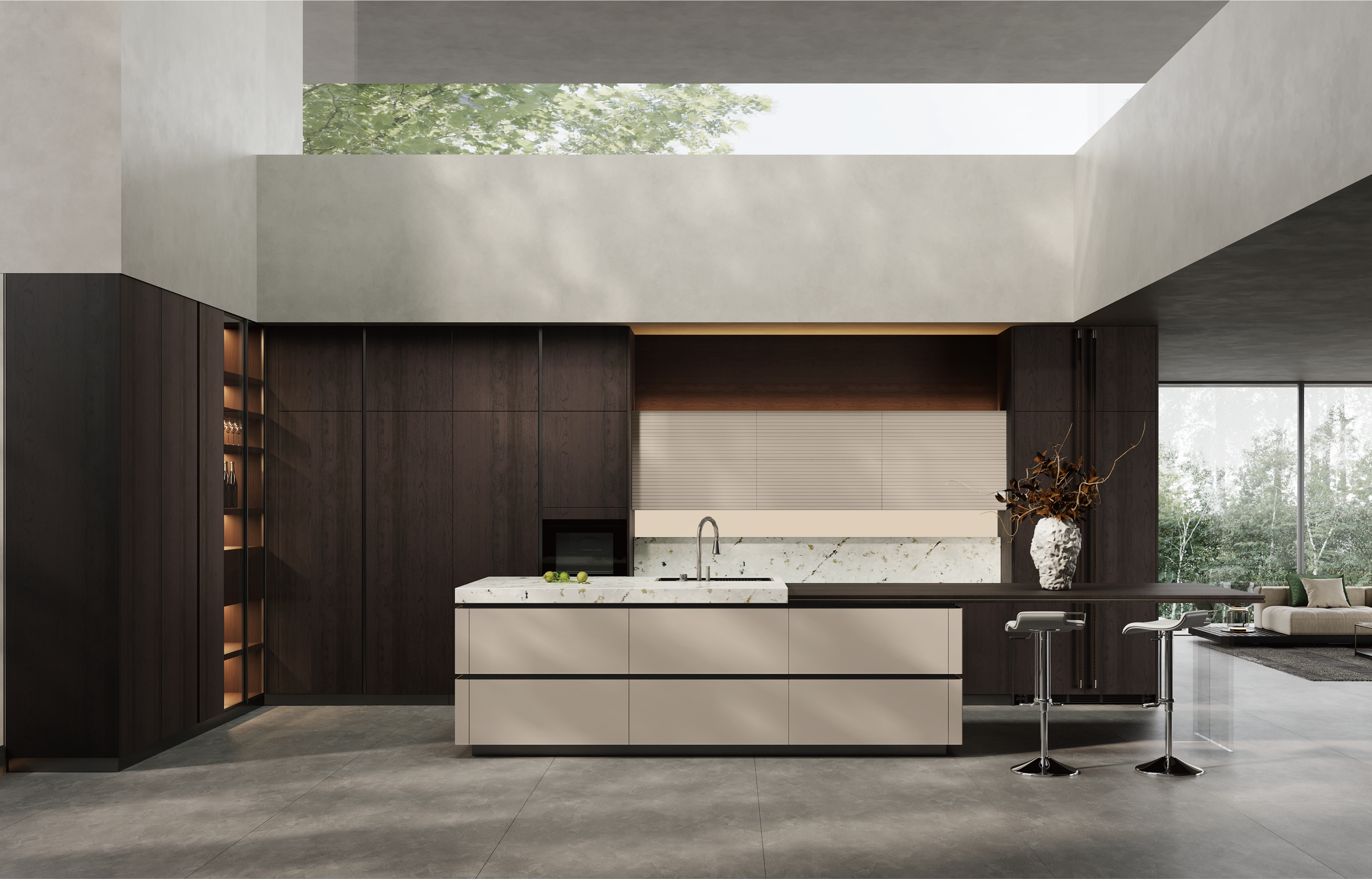 通过优发国际厨柜量体裁柜,定制出适合主厨下厨的烹饪区和洗涤区的舒适高度。